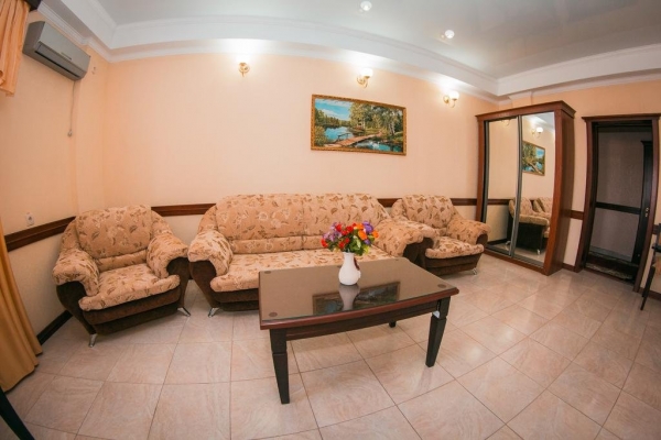 Остановились в данной гостинице по дороге домой с моря. Номер 4 местка, в комнате 4 кровати, телевизор, кондиционер, холодильник, прикроватные тумбочки. Постельное белье стираное, но уже застарелое. Полотенца по 2 шт на каждого, но как и пастельное белье требует замены. Мебель удобная, новая. На сайте пишут "В распоряжении гостей собственная ванная комната. Предоставляются бесплатные туалетно-косметические принадлежности и фен." у нас в номере был душ со шторкой. Из туалетно-косметических средств на 4 положили 3 шампуня и 1 гель для душа. Ванная комната совмещена с туалетом, маленькая, а главное-дверь с прозрачным стеклом. Сидишь в туалете и лицезреешь, чем занимаются остальные в комнате, или наоборот. Фен есть, достаточно мощный. "В каждом номере имеется чайник."- пишете вы. Но это ложь! Никакого чайника нет! Гостиница находится на трассе, так что отдохнуть не получится, ведь шумоизоляции здесь просто нет!! На 1 этаже находится столовая. Работает круглосуточно. Цены приемлемые. Еда удовлетворительная.