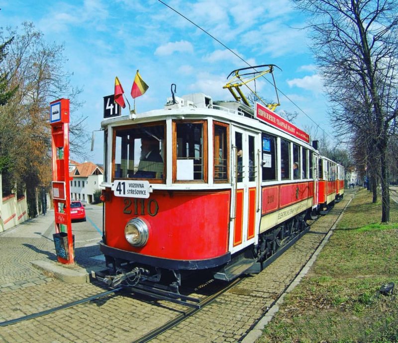 Возьмите путеводитель и садитесь в один из ретро-вагонов с деревянными сиденьями. Маршрут старинного трамвая начинается в вагонном депо Vozovna Střešovice. В этом депо размещена интересная экспозиция Музея общественного транспорта (Muzeum městské hromadné). Конечная остановка –Выставиште (Výstaviště Holešovice).