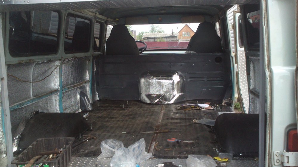 Один из бюджетных вариантов – закрепление поверх обшивки влагостойкой фанеры. Она несколько утеплит кузов «буханки» и повысит качество его звукоизоляции. По желанию хозяина можно использовать и другие материалы. Например, рулонный пенофол с фольгированием. Выбор большой.