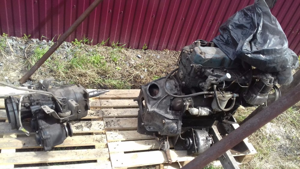 За зиму решили затолкать в Бухарика дизель, в связи с бессрочной кончиной 402 ! Короче за один день удалось только раскидать и так по мелочам . На фото новый мотор и трансмиссия ,будем теперь их женить !