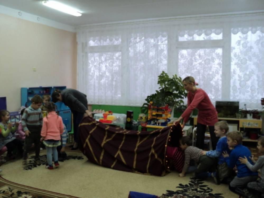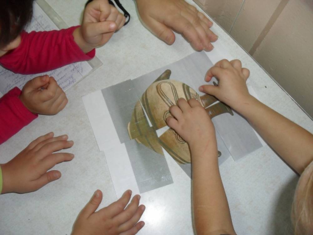 Материалы и оборудование: иллюстрации с изображением греческих сосудов, разрезные картинки, мольберт, глиняный сосуд, музыкальное сопровождение, «тоннель времени» (изготовленный воспитателем, поднос.