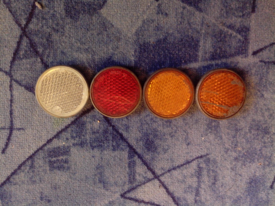 Достаточно бережно эксплуатировался и по сей день в полностью рабочем состоянии. Не хватало одной катафоты — белой, но с счастью она лежит уже несколько лет у меня на полке абсолютно новая, так что комплект ОСВАРовских советских светоотражателей составлен)