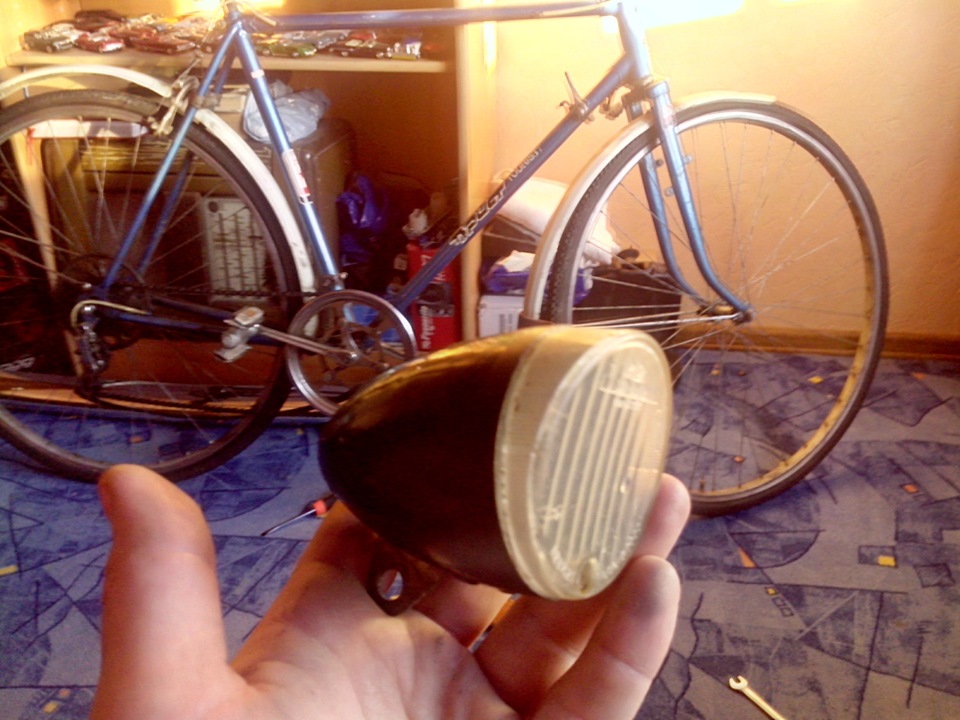 Так же папа как то давно нашел свою старую шестивольтовую фару где то, она долго стояла на АИСТе, что в деревне, но пару лет назад я привез ее в город, так что она думаю займет место белой катафоты.