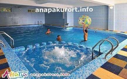 На территории Отеля Флагман имеется закрытый большой теплый бассейн . Бассейн разделен на взрослый и детский, оборудован водными аттракционами, гидромассажем, водопадом, противотоком и пенным джакузи.