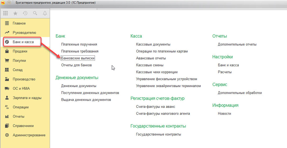 Сделать это можно несколькими способами. Первый вариант предполагает использование закладки «Загрузка выписки из банка».