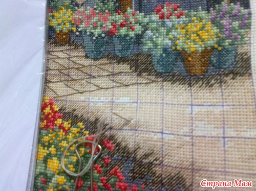 Разметка уже была сделана на канве заботливыми китайцами. Цвет ее был синий, и очень многие у меня интересовались, зачем же я разметила канву обычной ручкой Когда я намочила готовую работу в холодной воде, о, ужас!, ничего не изменилось! Но я не стала паниковать и просто замочила картину в холодной воде на полчасика. Как итог - синяя вода и ни одной лишней линии. Все отошло замечательно!