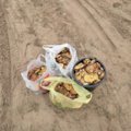 1. «Кухонная» сумка: 2 металлических подноса, скатерть, компактная газовая плитка с запасом газовых баллонов, набор туристических кастрюль под готовку на газе, туристический чайник 0,9 л, разделочная доска, полиэтиленовая банка с ложками, вилками, открывашкой и ножом, миски, кружки, запас разовой посуды на всякий случай (плоские тарелки и стаканы).