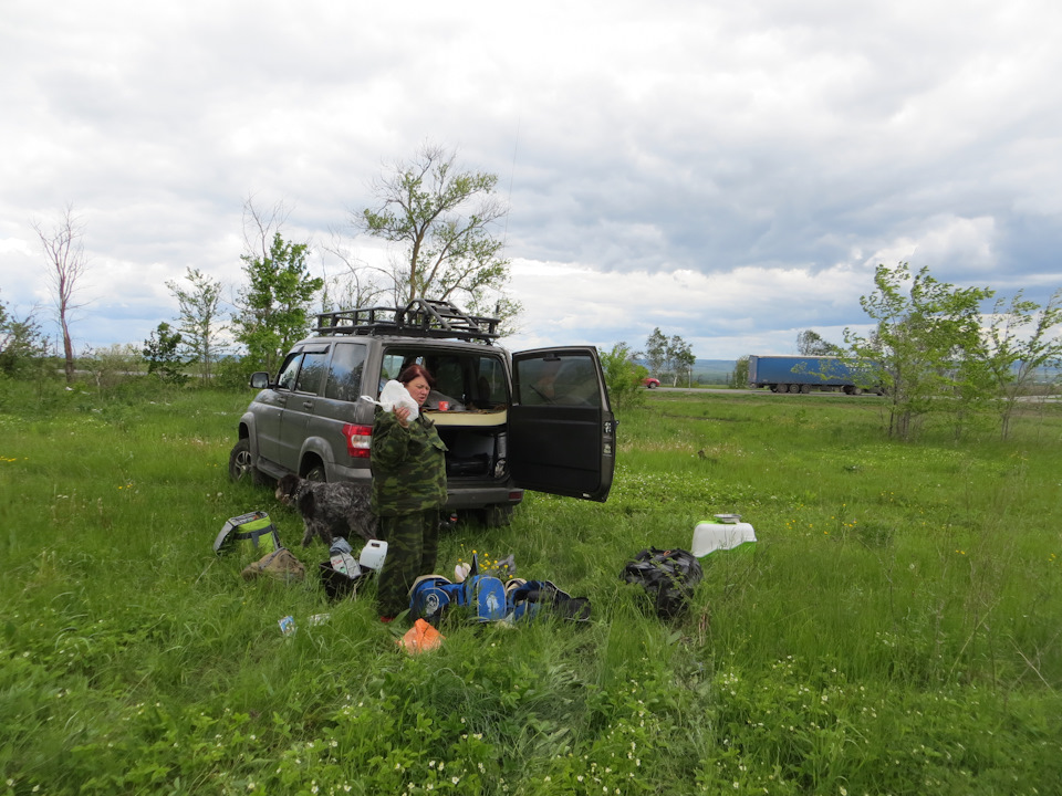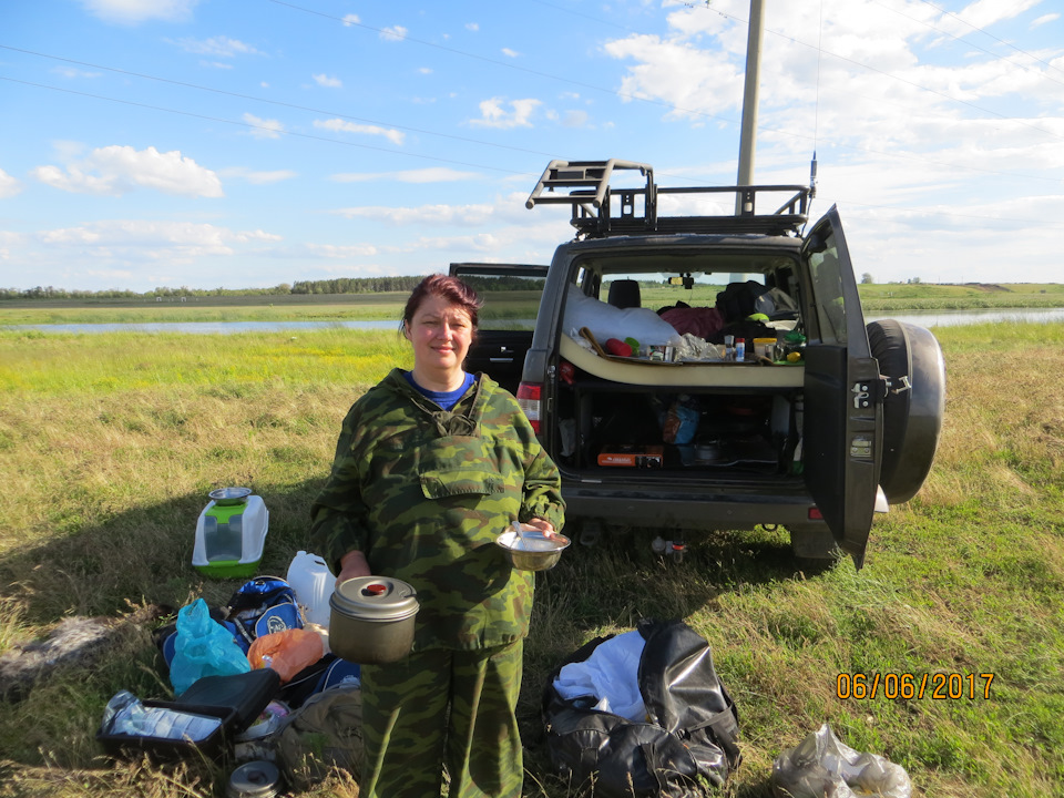 На время дневных стоянок сумки выкладывались на улицу, под спальник устанавливалась печка для готовки, край спальника у двери задка застилался скатертью, превращаясь в импровизированный стол. Острой потребности в стульях и столе мы не особо ощущали, ибо во время движения отсиживали седалища изрядно и постоять некоторое время было даже в радость. Хотя, оставшиеся дома складные стулья и стол совсем бы не помешали. А вот столика для перекуса, устанавливаемого между сидениями, при перекусах в стиле "молоко с копченным салом" и в мерзкую погоду очень и очень недоставало (данный недостаток впоследствии по результатам путешествия был устранен) Особо порадовало размещение плитки под довольно высоким спальником: оставляя удобным и безопасным доступ к кастрюле, плита остается практически полностью закрыта от ветра.