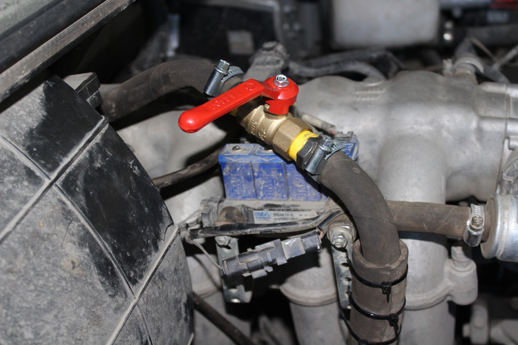 Дополнительный отопитель отключить оказалось тоже делом плёвым, правда, в моторном отсеке при этом поселилось ужасного вида сантехническое изделие, именуемое в простонародьи — краник.