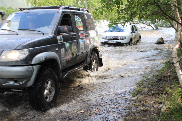 Отдельные участки, довольно длительные, нам пришлось преодолевать на 2-й скорости. Далеко не каждая лесная дорога может похвастаться таким качеством и количеством ям, как этот участок ФАД "Колыма". Но главной особенностью "Чурапчи" (как у нас обобщенно называют этот участок) является её непроходимость в затяжные дожди или мощные ливни. Мониторя прогноз погоды и увидев намечающиеся дожди, мы не рискнули оставаться на Амге (там великолепное место для отдыха и прекрасная рыбалка) и рвали когти, что бы успеть проскочить Чурапчу по сухому. Начался дождь, дорога стала на глазах превращаться в жидкую мешанину, мы кое-как объехали две фуры, незамедлительно севшие в образующейся трясине на мосты (одна из них при попытке объезда ранее закопавшейся). И это ФАД "Колыма" XXI века. За то мы очень гордимся Крымским мостом.