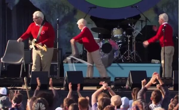 Лесли и Перкинс приезжают к дому, откуда несется рев электрогитар. Это Дуайер и Бренденавиц репетируют рок-композицию.