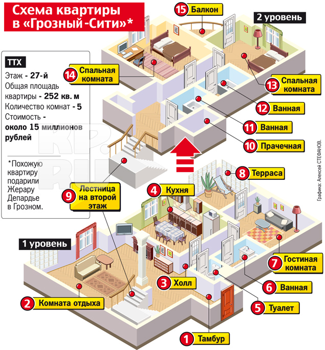 - А то! Один квадратный метр - до 80 тысяч рублей (в среднем по Чечне - 22 тысячи. - Авт.). Так что апартаменты Депардье стоят примерно 15 миллионов рублей.