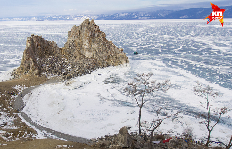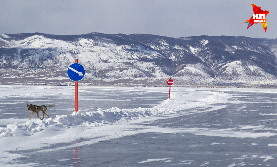 Если летом на Ольхон ходит паром, то с наступлением морозов все по-другому. В конце января — феврале (зависит от погоды, в этот раз дорогу открыли 10 февраля — за 12 дней до того, как экспедиция «КП» на Байкал двинулась в путь) на остров прокладывают зимник — так называют дорогу по льду. Его отмечают специальными вешками и знаками. Действует эта своеобразная трасса, по которой ходят и легковые машины, и грузовики, недолго: уже в конце марта — начале апреля, когда лед становится тонким, проезд закрывают.