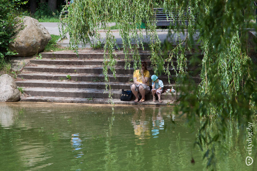 …От солнца отдыхающие спасаются в беседках, а также в тени деревьев расположенной неподалеку аллеи. Практически все лавочки, которых там немало, заняты. Горожане играют в шахматы, беседуют, читают книги и просто наслаждаются пением птиц. Пройдя этот оазис прохлады, вижу печально известную дамбу, которая раньше пользовалась большой популярностью у любителей прыжков в воду. Развлечение часто заканчивалось трагически. Сильное течение прижимало людей к решетке водосброса, и выбраться самостоятельно они уже не могли. Ежегодно здесь погибали несколько человек. Например, пять лет назад тут утонул чемпион мира по дайвингу! Сейчас же все участки дамбы, с которых можно было прыгать, накрыли бетонными плитами. Прыжки прекратились, а вместе с ними и несчастные случаи.