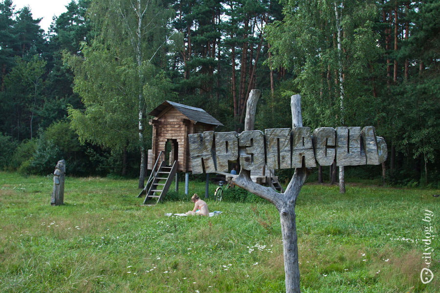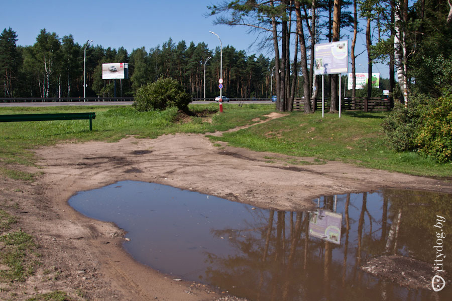 На входе вас встречает пляж. Это, как я понимаю, река Свислочь.