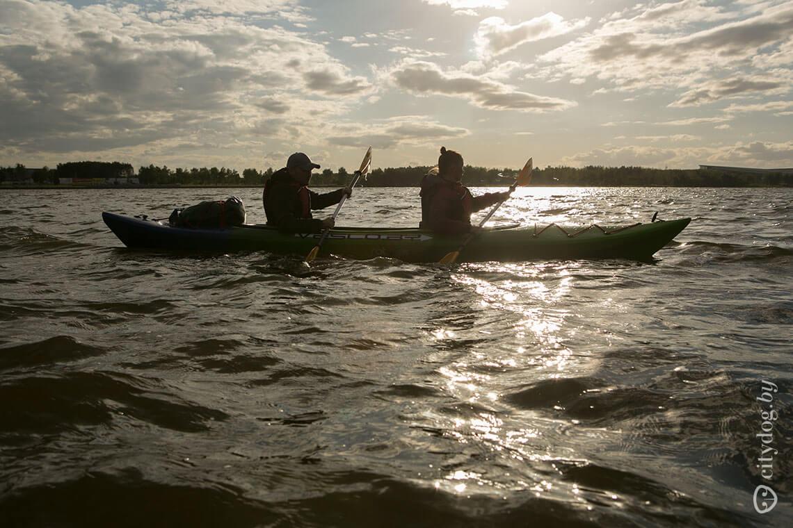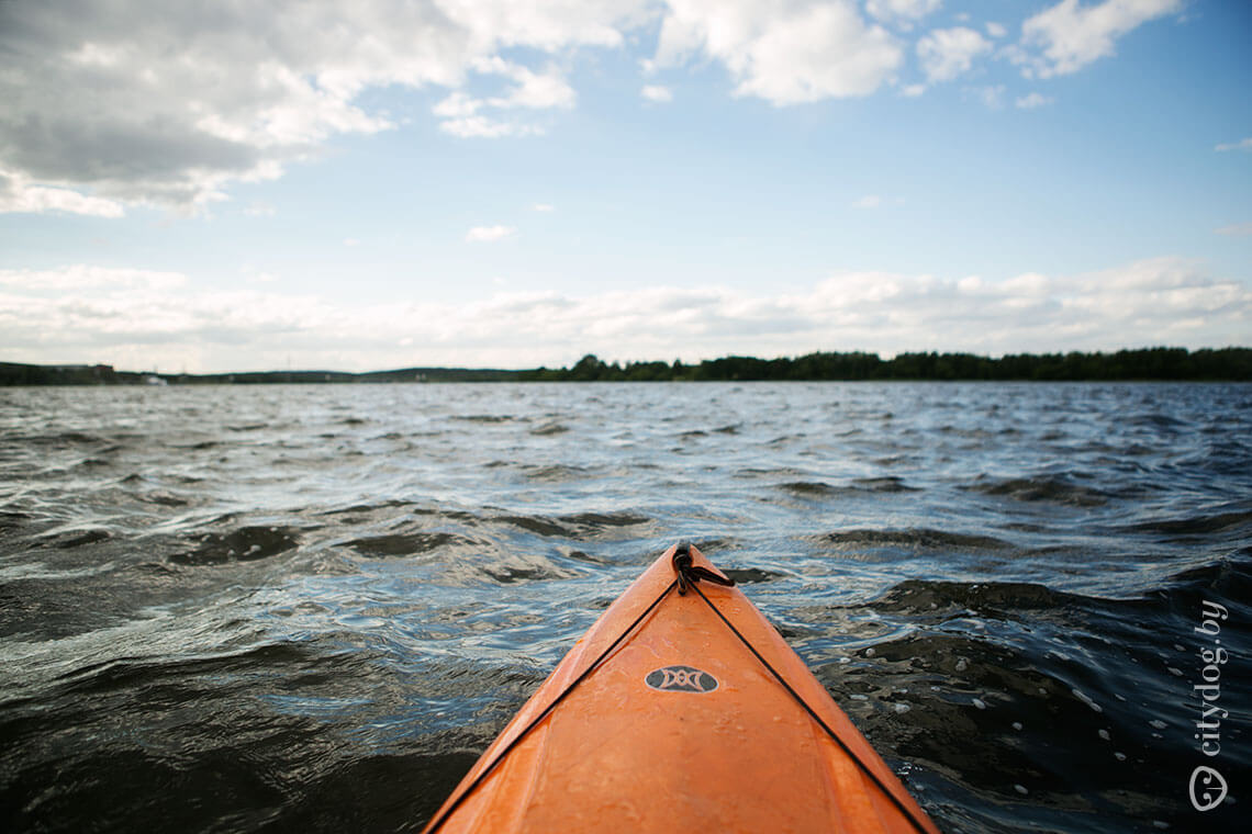 И это правда: на улице прохладно, но нужно постоянно грести, поэтому 13 градусов ощущаются только после выхода из воды. Ветер тоже не проблема. На большей части маршрута его просто нет, а на начальном этапе он даже помогает неопытным байдарочникам.