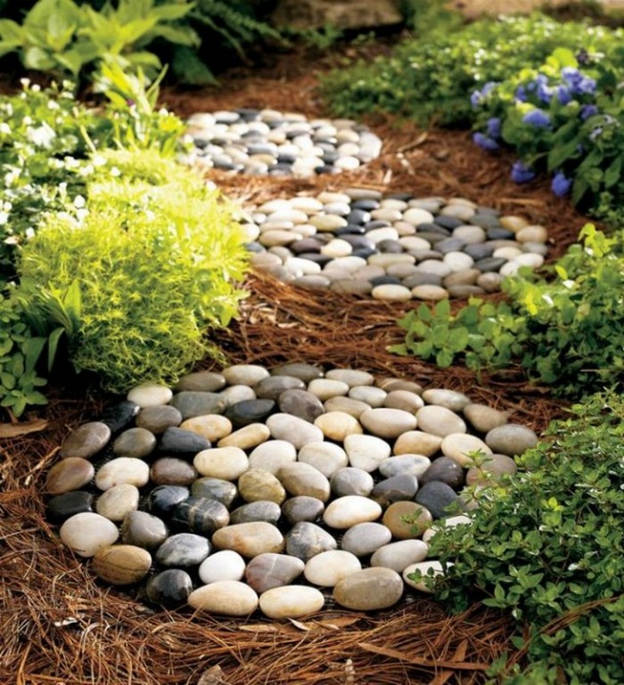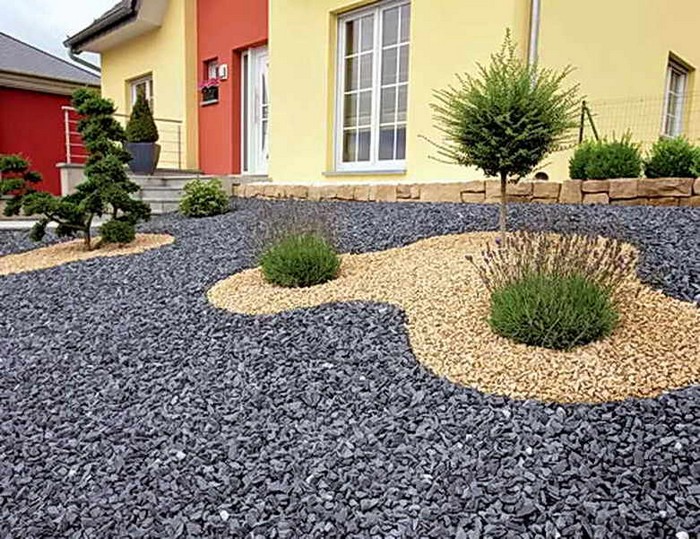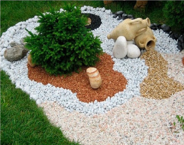 Галька, представляющая собой небольшие плоские камушки с окатанной поверхностью разного размера, формы и цвета, проста в работе, но зато дает возможность воплотить в жизнь самые оригинальные идеи, выступая прекрасным дополнением к ландшафтному дизайну любого стиля.