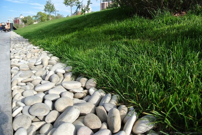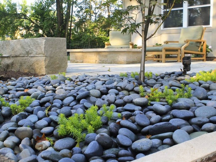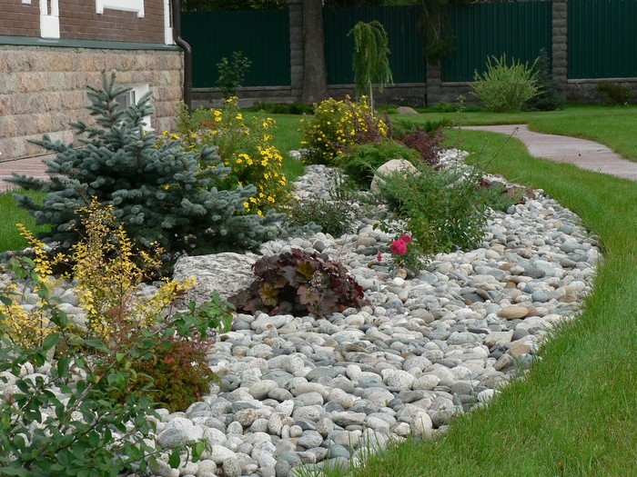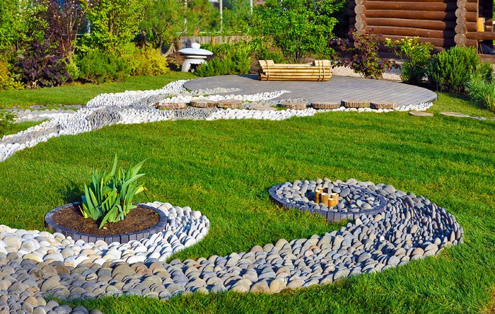 Камни используются разного размера, от булыжников до валунов, в зависимости от тех задач, которые поставлены, но, все же, наиболее универсальным вариантом каменного декора, нашедшим широчайшее применение в ландшафтном дизайне, является галька .