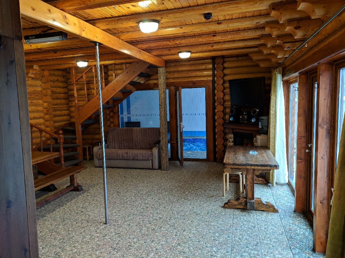 На втором этаже выход на открытую террасу, на которой можно загорать летом. Русский бильярд-10 фунтов. Большой телевизор со спутниковым телевидением, 4 мягких комфортных дивана. 2 зеркальных комнаты с телевизорами, вентиляторами и закрытыми балконами