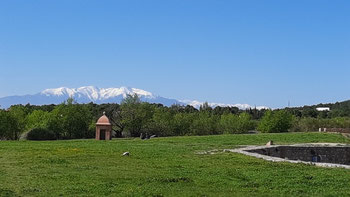 ![Пиренеи из окна поезда Барселона Франция]()