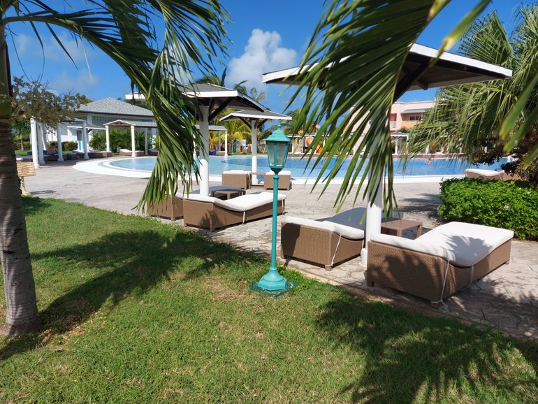 Заселились в номер ровно в 14:00. У нас 7305, это номер на 3 этаже 7 корпуса выходит на океан, открытая веранда с личными лежаками, гостиная, спальня, гардеробная, джакузи и т. д. Уборка ежедневная, вода, кофе ежедневно, персонал самый доброжелательный из всех кого я когда-либо видела. В общем к отелю претензий нет. Единственный момент, практически нет фруктов, но я была готова, читала отзывы, что в феврале с фруктами на Кубе беда.