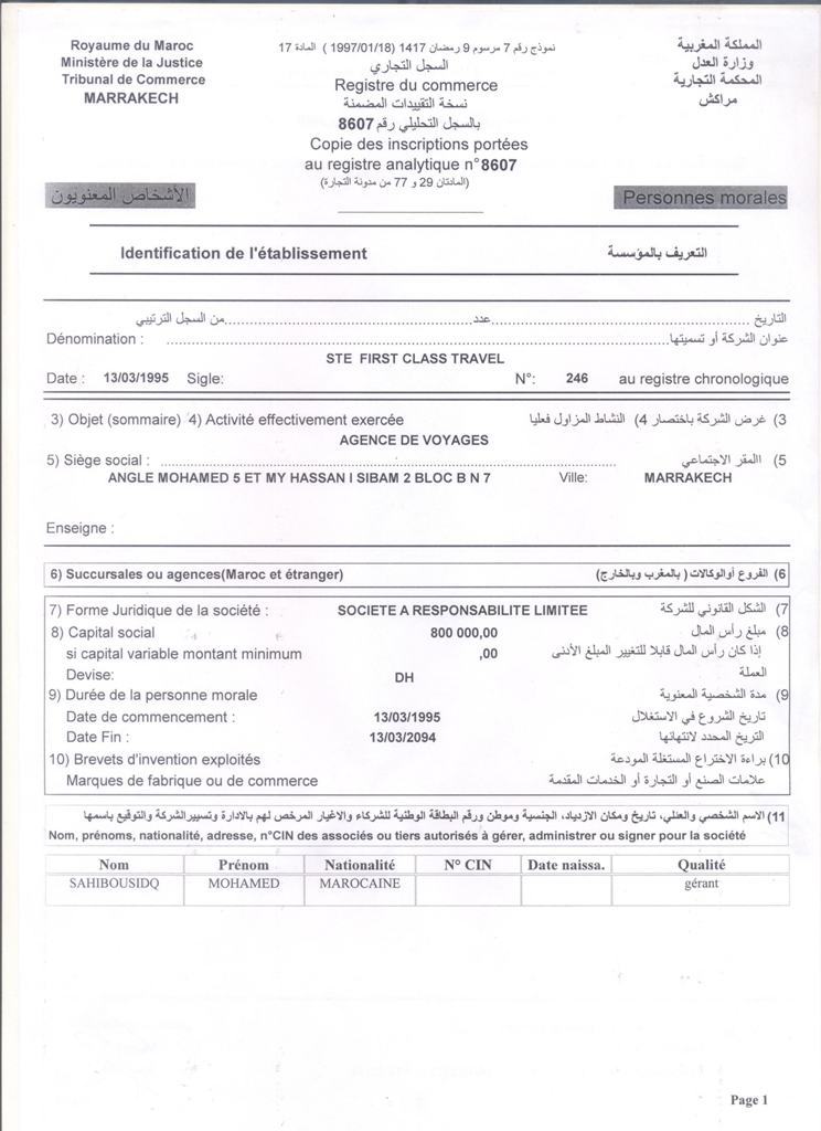 "Для меня большая честь принимать в Марокко гостей из России. Я всегда восхищался культурой этой страны. Еще будучи студентом познакомился с великой русской литературой. Лучший момент в моей работе - это когда глубокой ночью клиенты разъезжаются после прощального гала-ужина, и мы, довольные и уставшие, поднимаем бокал за очередное успешно проведенное мероприятие!" "Марокко - мой второй дом. Прожив 5 лет в этой стране, я стала немного марокканкой. Объездив каждый уголок страны и перечитав множество книг о ней, я все еще многого не знаю о ее богатейшей культуре. Обожаю свою работу, потому что она дарит людям новые открытия, яркие эмоции и радость!" Наши документы Выписка из реестра юридических лиц Марокко Посмотреть Лицензия на ведение туристической деятельности от Министерства туризма Марокко Посмотреть