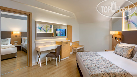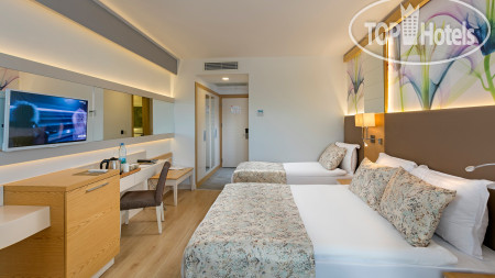 В жаркие дни стоит освежиться в открытом бассейне, а в прохладные поплавать в крытом. Водная горка – это отличное развлечение для детей и взрослых. На солнечной террасе – лежаки и зонтики. В баре у бассейна можно отлично перекусить. Для тех, кто предпочитает активный отдых, курортный комплекс предлагает бочче, пляжный волейбол и стрельбу из лука. К предлагаемым видам водного спорта относятся гидроцикл, водный велосипед, катание на лодке-банане, катание на катамаране и аквафитнес. Катание на водных лыжах предлагается вне отеля. В этом отеле созданы все условия для поддержания прекрасной физической формы благодаря фитнес-студии, настольному теннису, дартсу, залу для сквоша, йоге и курсу аэробики. Восстановить силы помогут услуги велнес-центра, в том числе спа-процедуры, сауна, парная, хамам, салон красоты и аюрведические процедуры, а за дополнительную плату еще и массаж. Организован разнообразный досуг: анимационная программа, живая музыка, дискотека, детский клуб, детская дискотека и ночной клуб.Номера