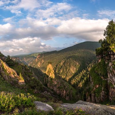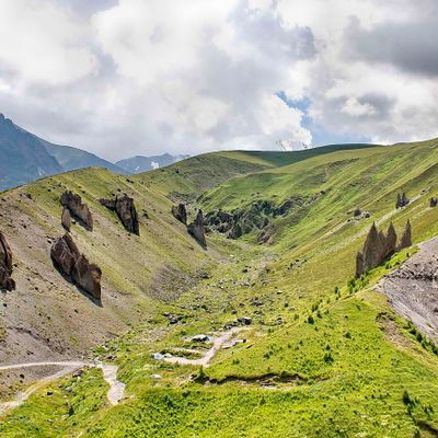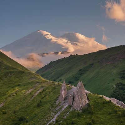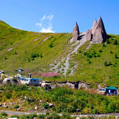 Далее мы отправимся посмотреть на местное чудо природы в Долине замков. Вы увидите созданные ветрами фигуры из скал с очертаниями людей, животных и фантастических существ. После этого мы посмотрим на три водопада: Кызылкол, Каракая-Су и Султан, — которые питаются водой из тающих ледников Эльбруса.