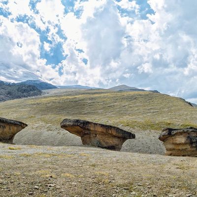Вариант 1 - Экскурсия к Долине каменных грибов. Вряд ли в своей жизни вы видели что-либо подобное! Практически ровная площадка усыпана огромными каменными останцами, по форме напоминающими грибы. Это место находится на высоте 3100 м. Здесь нас ждет отдых, чай, оригинальные фотографии с (на/ под) каменными грибами. Эзотерики приписывают этому месту особую энергетику. Оцените сами!