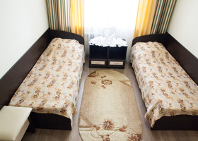 Тип размещения: номер категории "стандарт" - однокомнатный номер, площадь 18 кв.м., две односпальные кровати, прикроватные тумбочки, стол, шкаф.