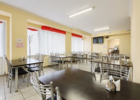 Также отдельно предусмотрены номера для людей с ограниченными возможностями. В каждом номере есть свой санузел, фен, электрический чайник, телевизор, мини-холодильник, Wi-Fi. Заезд осуществляется с 14:00, выезд — до 12:00. Также в гостинице есть свой большой ресторан с доступными ценами.