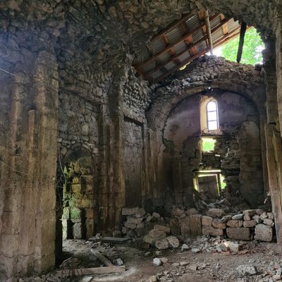 Живописные развалины обогатительной фабрики и электростанции, построенных бельгийцами в годы активных поисков руд и металлов в горах Кавказа в селе Фаснал.