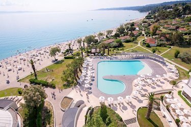 Отель расположен на берегу лазурного Эгейского моря, в окружении просторного сада с фисташковыми деревьями.