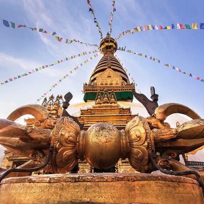 В случае своевременного перелета в Катманду, этот день можно посвятить познавательной прогулке по Катманду. Можно посетить самые интересные места города: Пашупатинатх - храмовый комплекс, посвященный Шиве, стоит на берегу почитаемой реки Багмати, здесь проходят ритуалы омовения и кремации; Будданатх - одна из самых больших и старых буддийских ступ в мире; Сваямбхунат - маленький городок из буддийских храмов, монастырей и индуистских религиозных сооружений. С вершины холма "Обезьянья гора", где расположен Сваямбунатх, открывается великолепная панорама долины Катманду - красочной зеленой котловины, окруженной величественными горными вершинами.