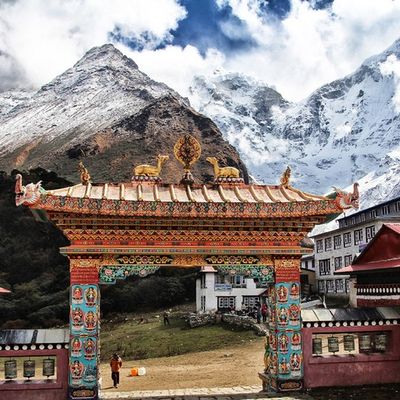 Одна из природных достопримечательностей, которую вы встретите по пути, — живописная гора Ама-Даблам. На основной трассе к восхождению на Эверест на высоте 3867 м расположена деревня Тенгбоче с одноимённым монастырём. Вы полюбуетесь монастырскими воротами с изображенными на них драконами и посетите необычную пуджа-службу, которая сопровождается преподнесением божеству огня, фруктов, лепестков.