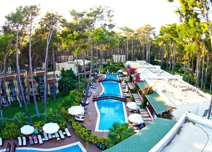 Еще один невероятно популярный отель в Кемере для семейного отдыха, в том числе и с детьми. Трехэтажные бунгало, которые расположены прямо между сосен, активная анимация, хорошее питание. Если говорить коротко об этом отеле: тут очень-очень-очень уютно. Для каждого тут найдется свой шезлонг на полянке в сосновой тени. Невозможно отказать себе в удовольствии.