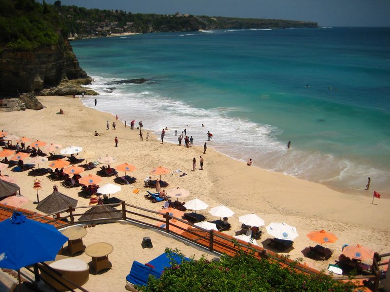 Утренним рейсом улетаем в Денпасар. Трансфер на Дримлэнд, размещение в LE GRAND Dream Land.Дримленд со всех сторон окружен известняковыми скалами. Это часть старого кораллового рифа, поросшего тропической растительностью. Крутые склоны почти голые, слои породы образуют красивый рисунок. Вечером солнце отражается от воды и скал, поэтому здесь самые красивые места для любования закатами.