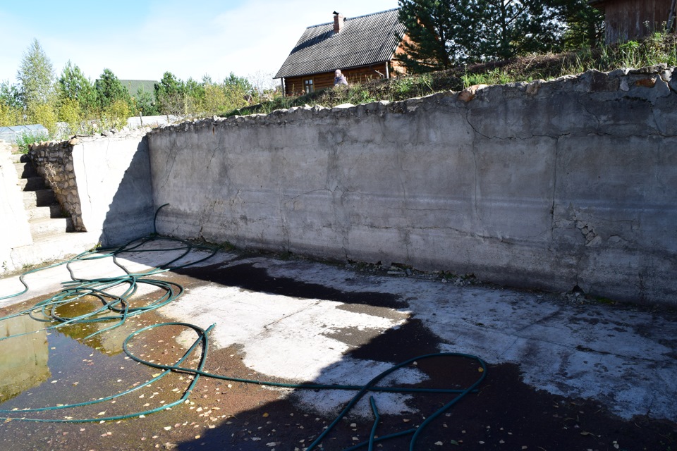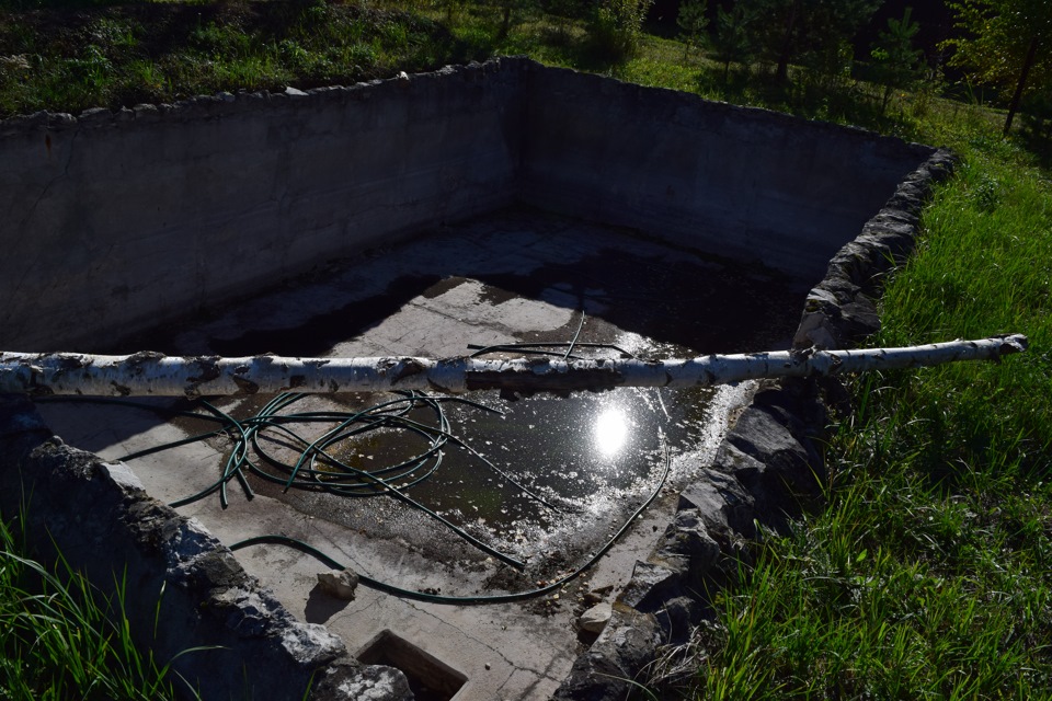 Итог: воду не держит. Весь в трещинах. Вода бывает только весной, и то быстро уходит. Одна из стенок падает.