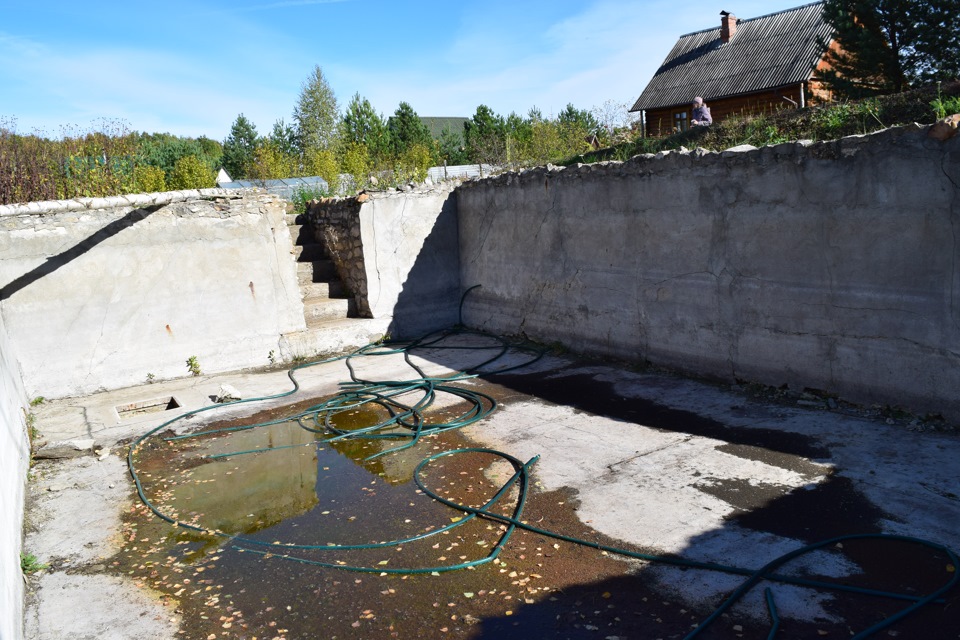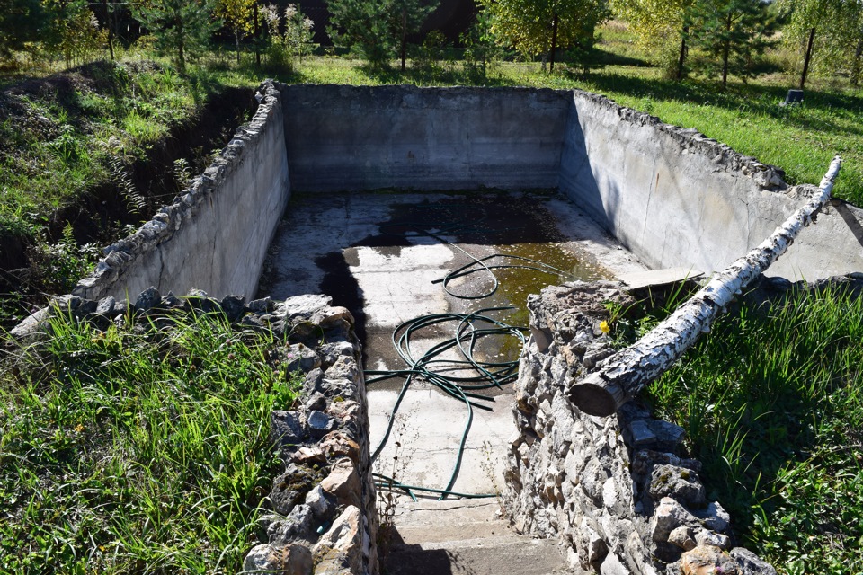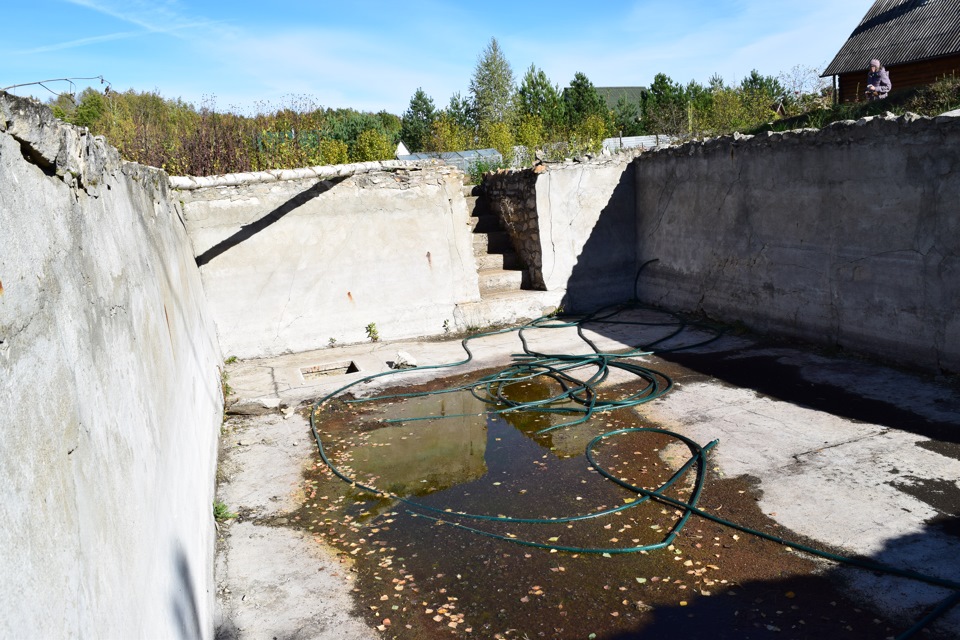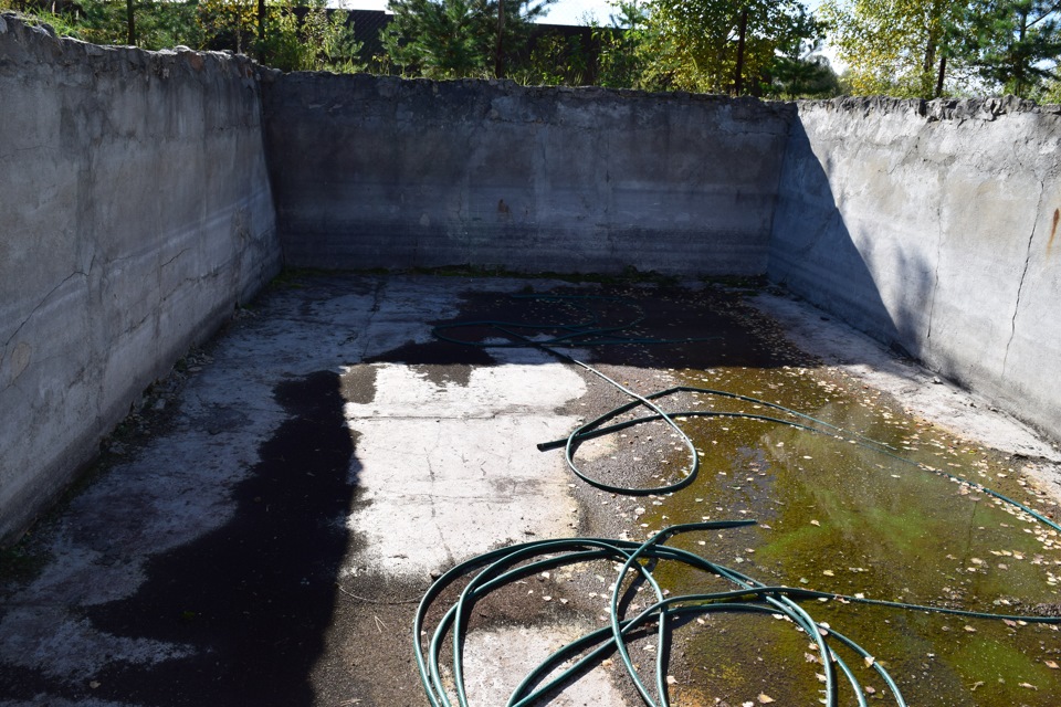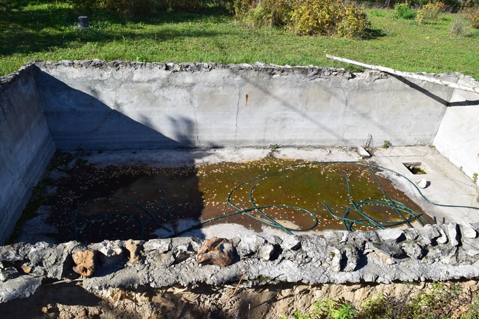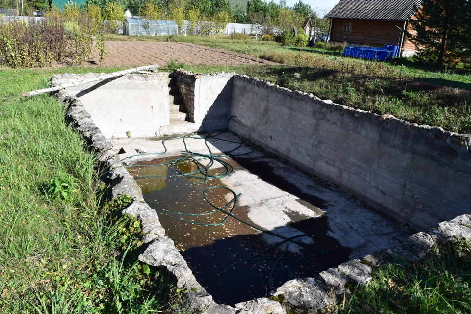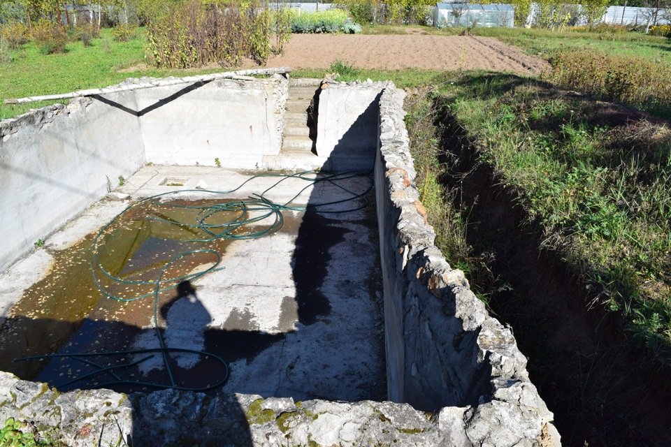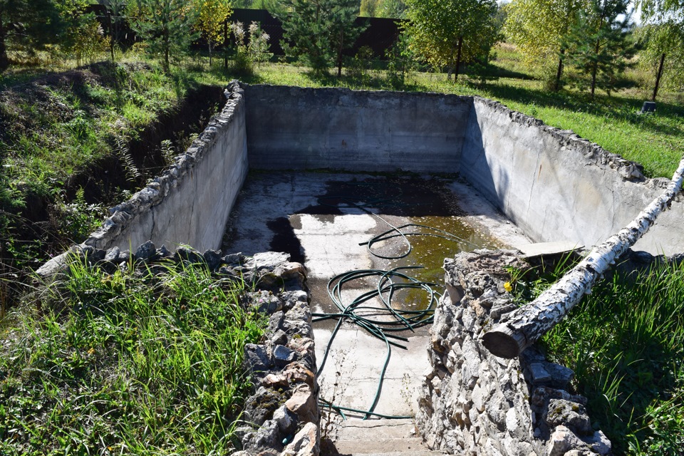 Бассейн выкопан более 10 лет назад. 6*8*2. 100 кубометров.