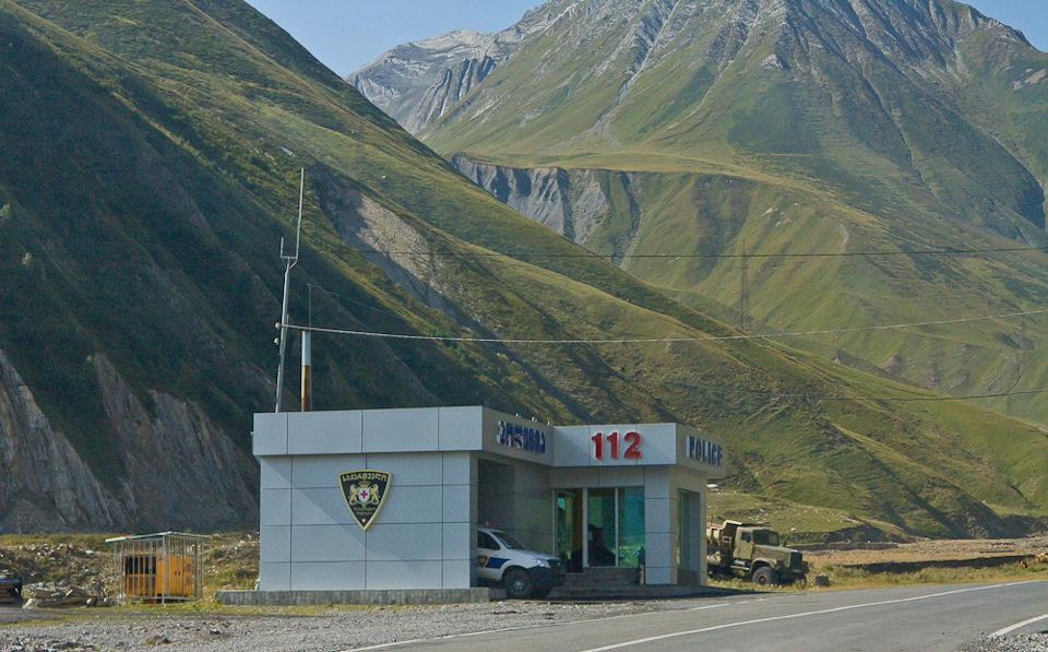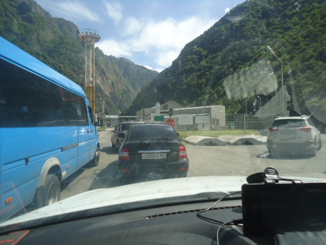 Сразу признаюсь — некоторые фотки — не мои.КПП Верхний Ларс находится рядом с одноименным поселком в 30 километров от Владикавказа. Кстати, рядом с границей стоит камера, фиксирующая всех тех, кто после изнуряющего стояния в пробке перед погранпереходом, решил прибавить газа. Письмо счастья найдет торопыгу. КПП расположено в узком Дарьяльском ущелье на берегу Терека.