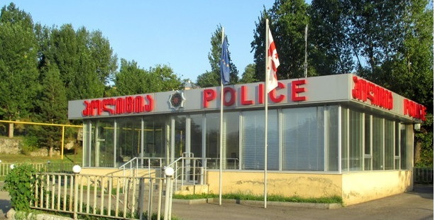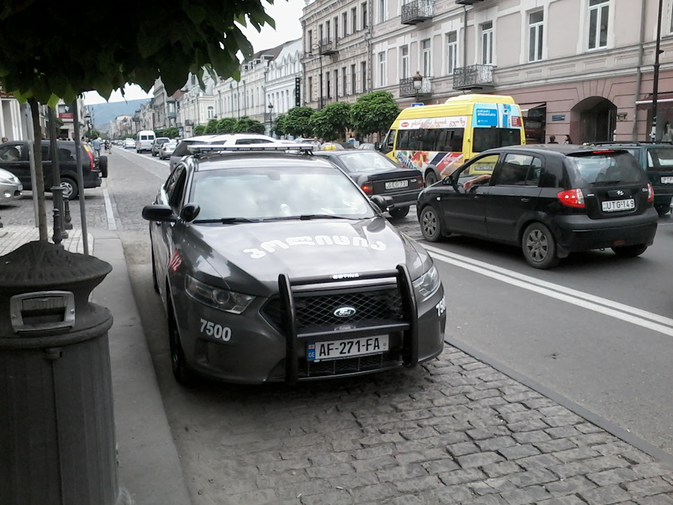 Около участка стоит полицейская машина. В окрестностях Тбилиси это, как правило, Форд