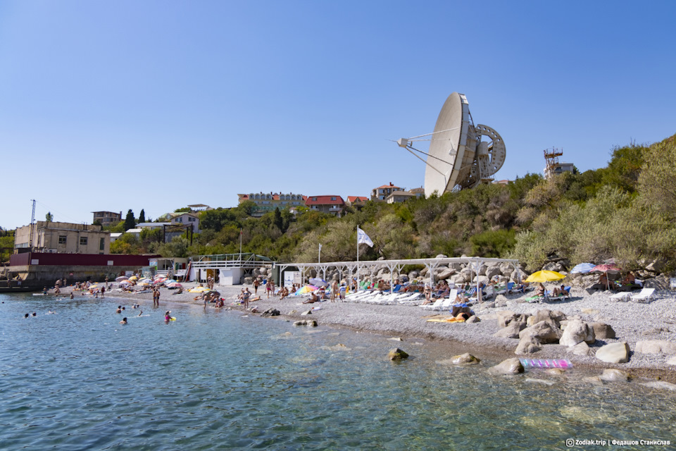 Этот пляж будет интересен не только любителям искупаться и позагорать. Посмотреть тоже есть на что! Не каждый день купаешься под огромной 22 метровой тарелкой с видом на голубой залив.