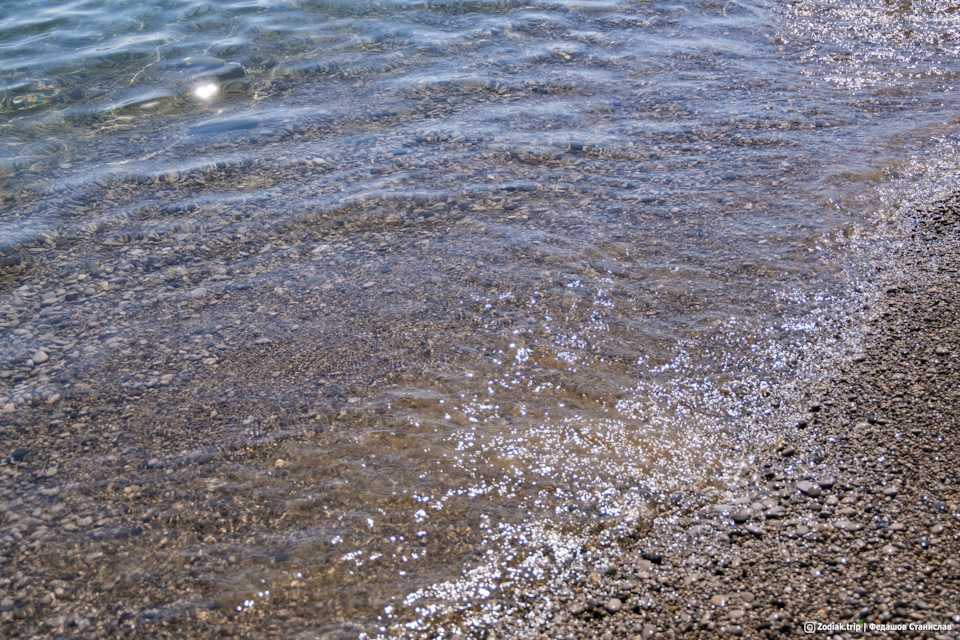 Пляж Топчам привлекает туристов с детьми своими немноголюдностью и пологим входом в воду.