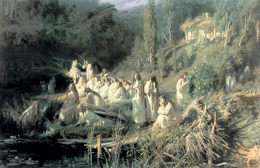 И надо сказать, им здорово повезло. По поверьям, русалки могут сорвать со смертных одежду и отстегать ветками. Невестам, беременным и кормящим мамам в майские дни даже во двор лучше не соваться. Впрочем, иногда, проявляя женскую солидарность, мавки могут наказать неверного или деспотичного мужа: отнимут разум или сведут в могилу.