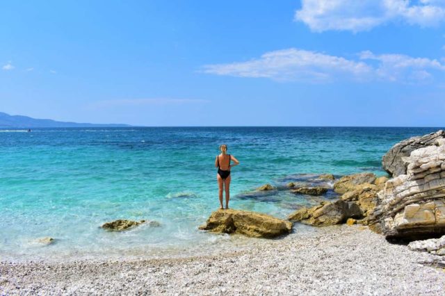 Химара — галечный пляж, омывается Ионическим морем. Очень чистая и прозрачная вода, считается топовым местом для дайвинга.
