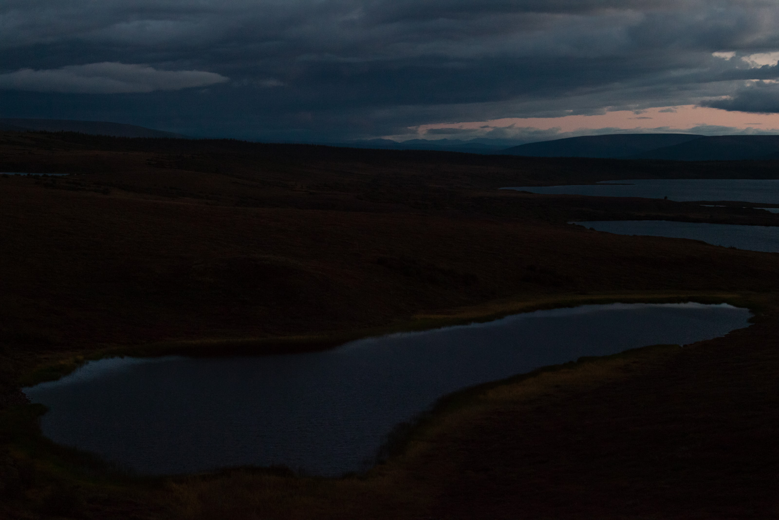 Появляется гладь воды, подсвечиваемая еще не очень темными ночами. С одной стороны озеро подпирают горы, с другой - пологие таежные склоны. Здесь я впервые вижу деревья на Чукотке.