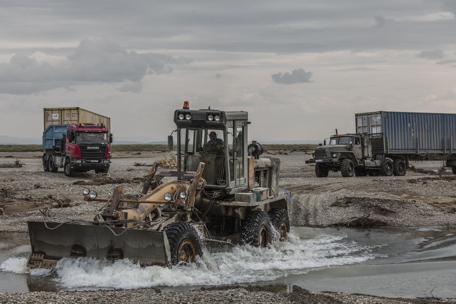 В караване всего 7 машин: Уралы, Камазы и одна внедорожная Сканья впереди колонны во главе с Алексеем. После каждой реки он по рации объявляет условия брода и дает команду - как его проходить, насколько стравливать давление в шинах, есть ли сыпун на дне (мелкий щебень, в котором очень легко завязнуть).
