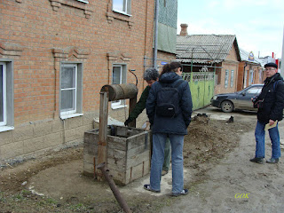 Дальше мы отправились к родникам Чалтыря. Буквально рядом, в центре, находиться самый популярный источник, из которого набирают воду все местные, но говорят, что кипятят перед употреблением. Рядом установлен бутафорский колодец.