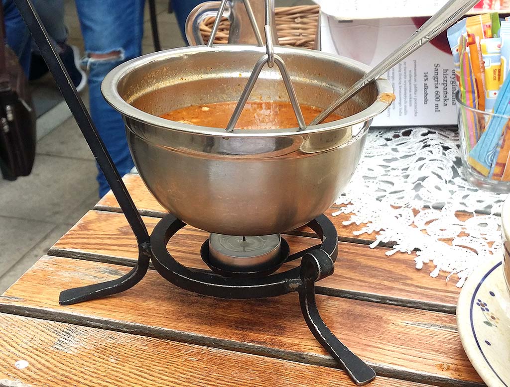 Обслуживают очень быстро, говорят на английском. Обеденного меню не нашел. А вот способ подачи фляков меня очень порадовал. И как всегда — вкусно!