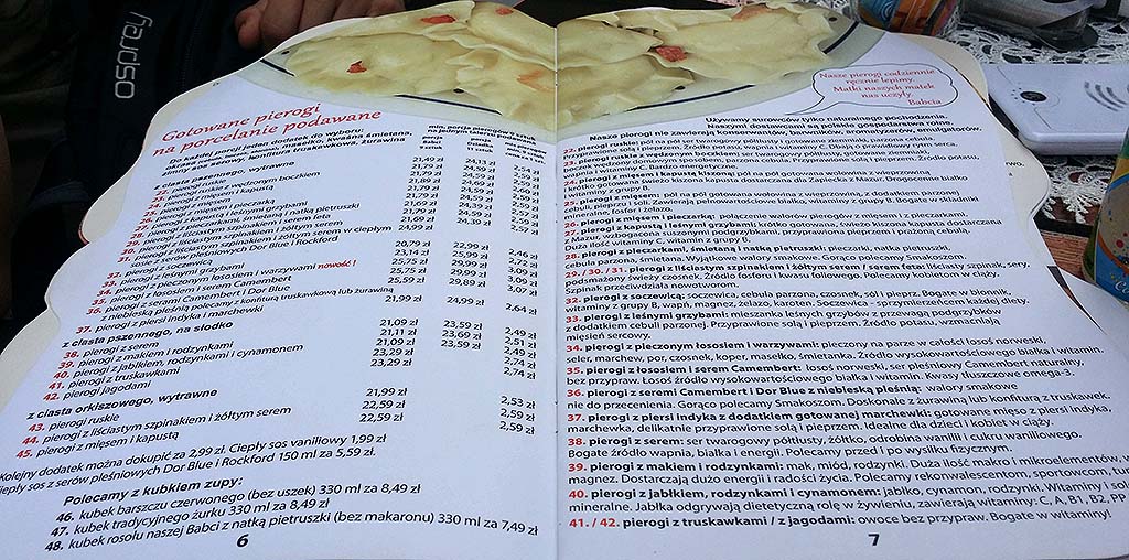 Как сообщили мне мои знакомые, это место именно для любителей вареников. И действительно, выбор этого продукта здесь мягко говоря большой. Вплоть до того, что можно заказать хоть один. При этом заведение не обделено классическими блюдами польской кухни. Цены — смотрите ниже.